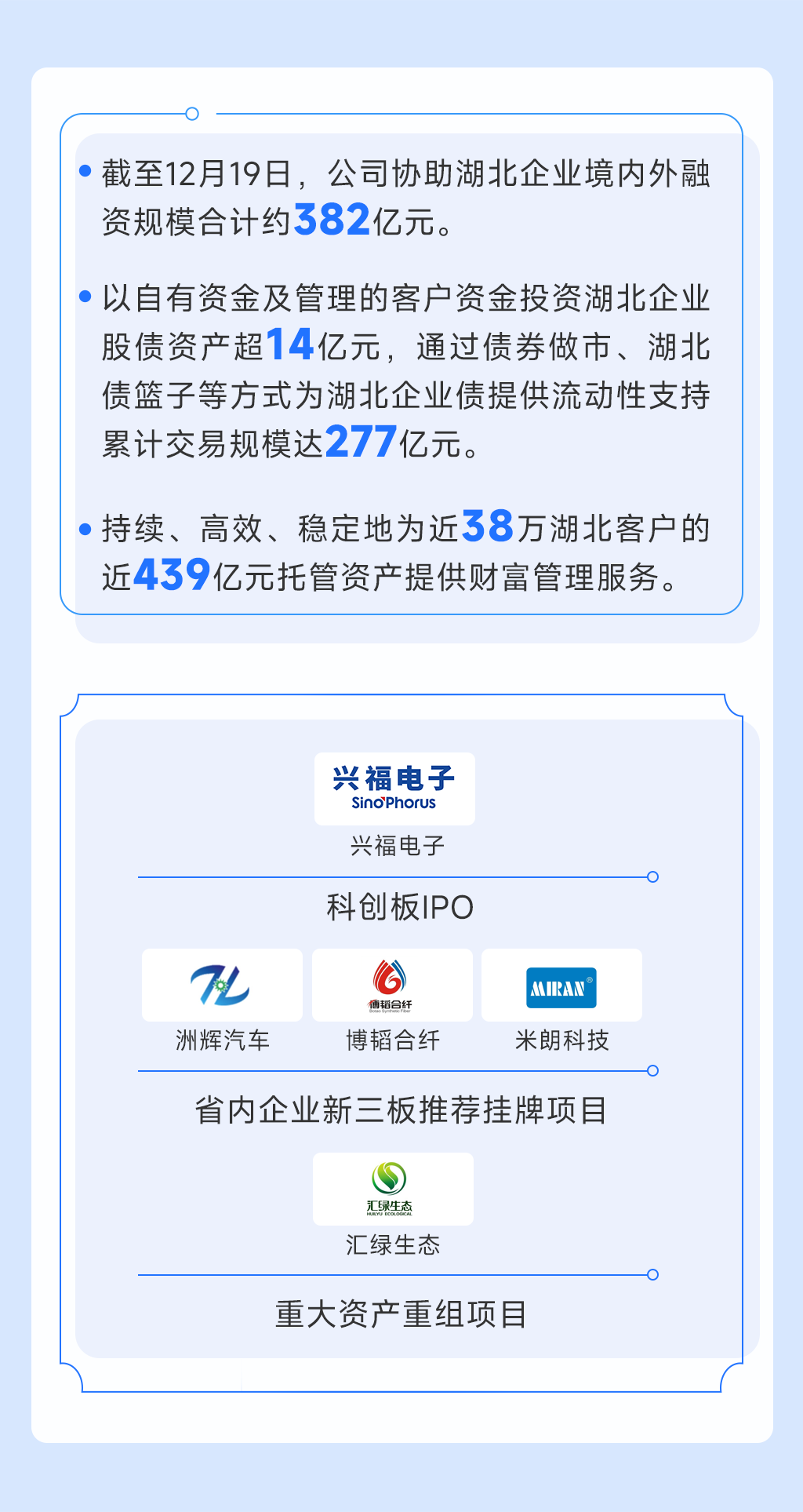 在深耕省内产业协同的基础上,“城市投行” 进一步延伸服务半径,成为湖北链接世界的金融纽带。天风国际先后协助湖北省商务厅、武汉市投促局等在香港设立7家地方政府境外招商联络站;同时,通过跨境融资服务助力湖北企业“走出去”参与全球竞争,近三年累计协助省内企业完成境外融资近300亿元,为湖北建设更高水平开放型经济新体制提供有力支撑。