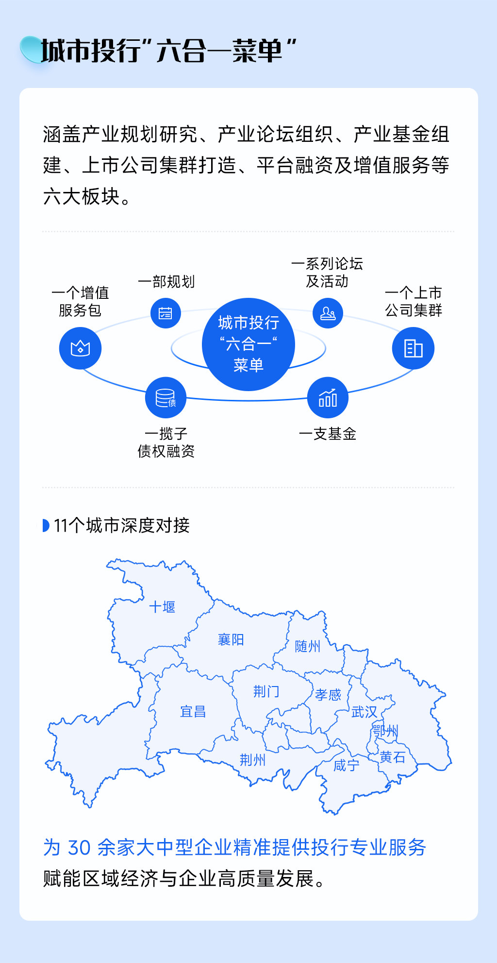 “城市投行并非单一融资通道,而是立足城市发展逻辑的综合金融服务生态。”公司相关负责人表示,这一战略以优化区域产业结构为目标、服务实体经济为根本、整合金融产业资源为手段,坚持 “一城一策”,当好地方金融顾问、产业参谋、招商大使,畅通直接融资渠道,彰显湖北省属金融企业责任担当,提升地方资本市场服务能级。