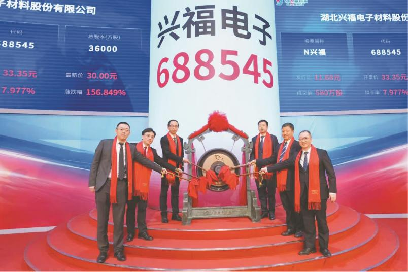 锚定国家科技创新战略导向,“城市投行”持续强化对科技创新领域的金融赋能,让创新活力充分涌流。2025年1月22日,天风证券作为独家保荐机构及主承销商,成功护航湖北兴福电子材料股份有限公司登陆科创板,成为湖北省2025年首家IPO上市企业,亦是湖北省、市、县三级国资体系中首家成功在科创板上市的国有企业。该项目凭借专业服务与市场影响力,入选行业金鼎奖精品案例。
