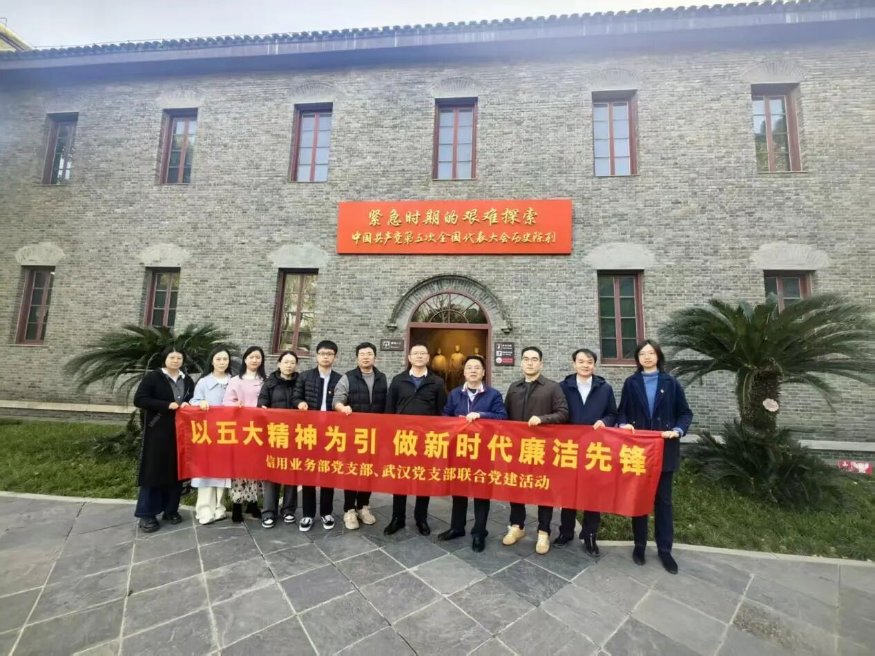 近日,信用业务部党支部与武汉党支部共同组织前往中共五大会址开展联合党建活动。全体党员走进这座见证党的纪律建设起点的红色地标,以“五大精神为引 做新时代廉洁先锋”为主题,开展沉浸式学习,在历史与现实的交融中淬炼党性、筑牢廉洁根基。