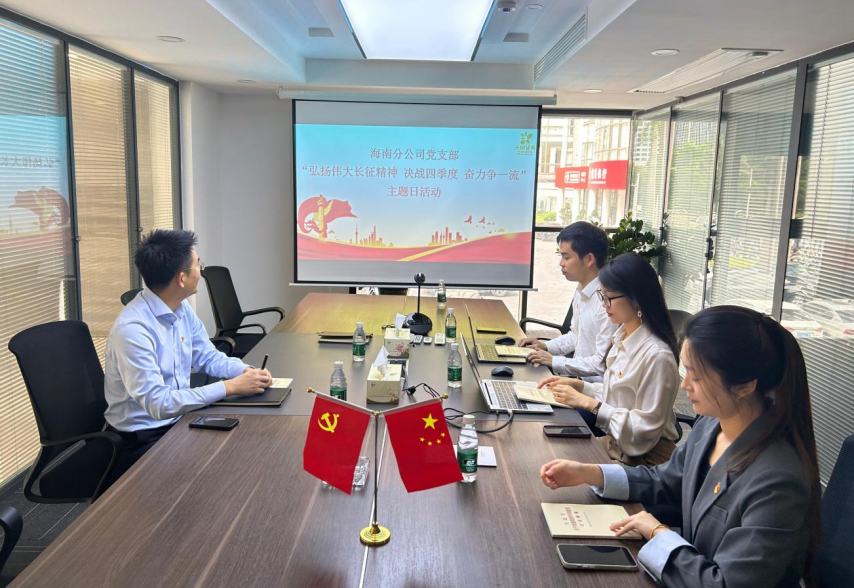 近日,海南分公司党支围绕“弘扬伟大长征精神,决战四季度,奋力争一流”开展主题党日活动。党支部书记熊志威主持活动,全体党员参加。