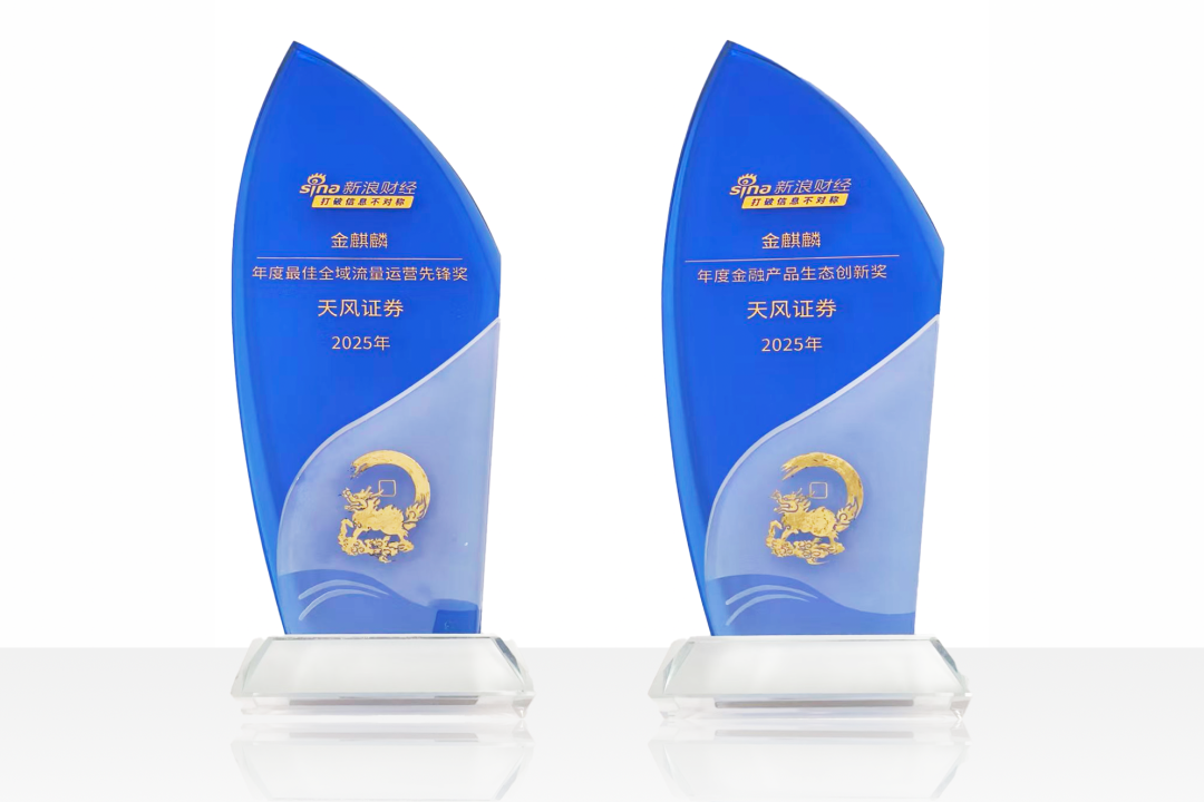 近日,由新浪财经举办的金麒麟·2026全球与中国资本市场展望论坛在北京落幕,论坛同时揭晓了年度最佳财富管理机构荣誉奖项。天风证券凭借在金融产品、投教服务,以及围绕ETF业务打造的数字化运营生态体系获得行业高度认可,荣获“年度金融产品生态创新奖”及“年度最佳全域流量运营先锋奖”。