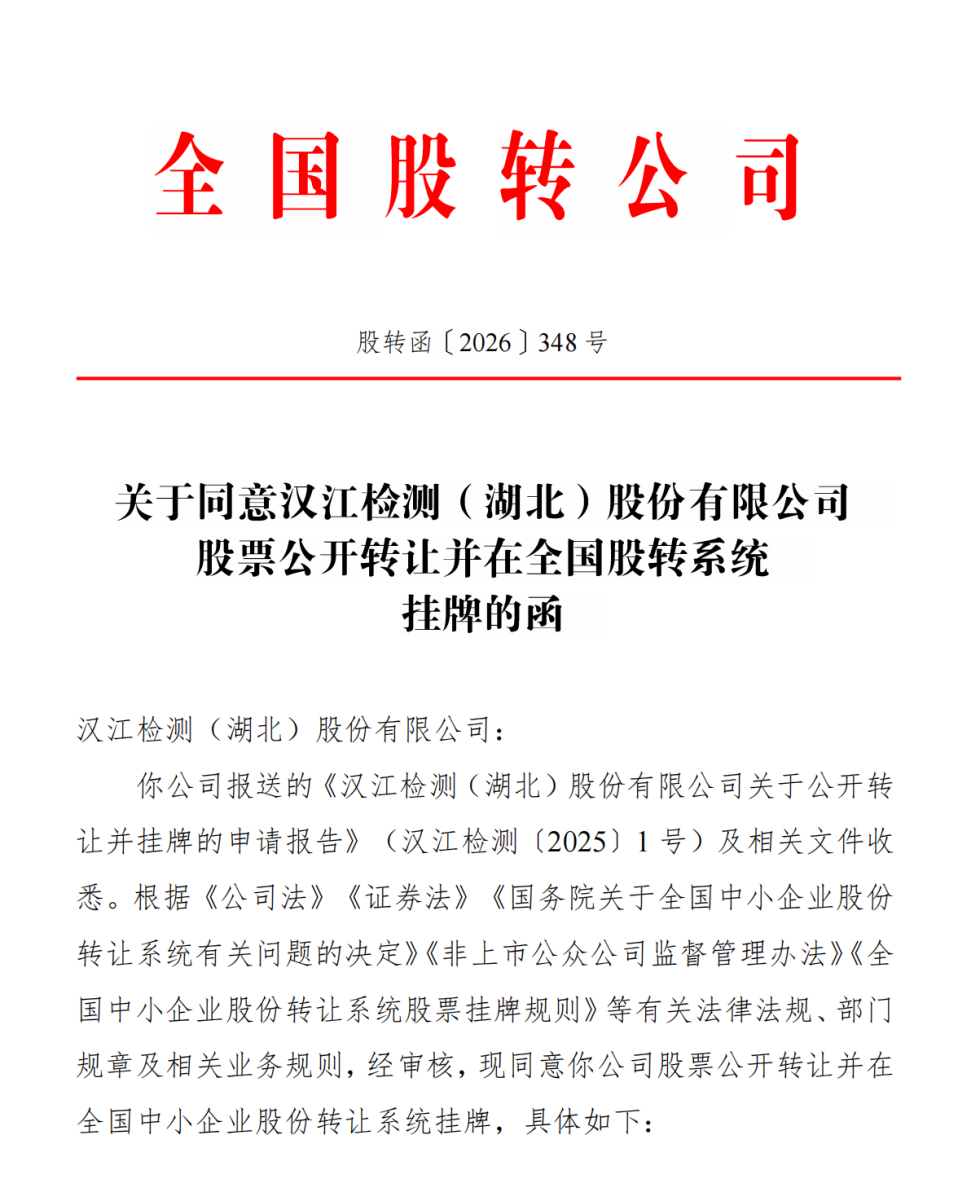 近日,由天风证券主办的汉江检测(湖北)股份有限公司(以下简称汉江检测)正式在全国中小企业股份转让系统(新三板)挂牌,证券代码874807。