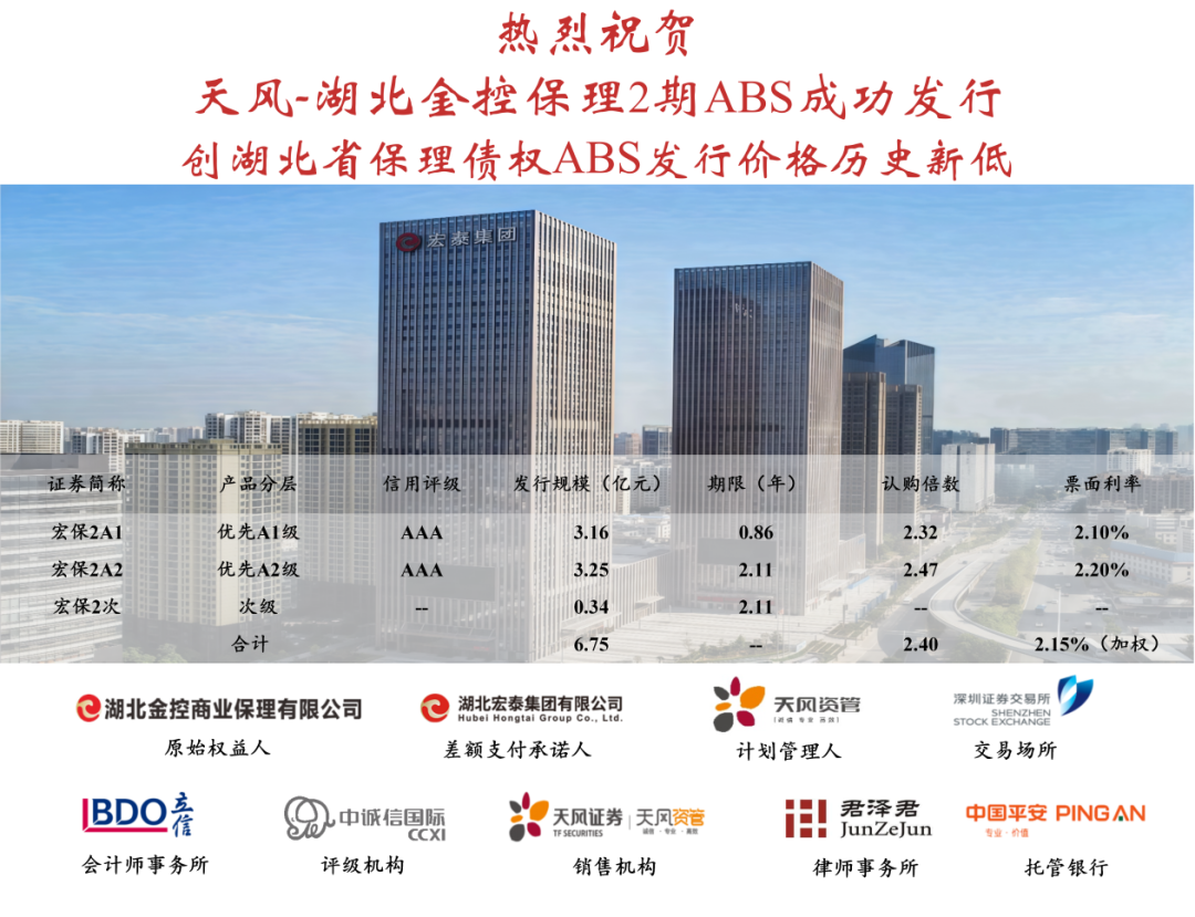 ◆ 天风-宏泰大厦专项计划,成为全省2025年首单在深交所挂牌的物业抵押资产证券化产品;