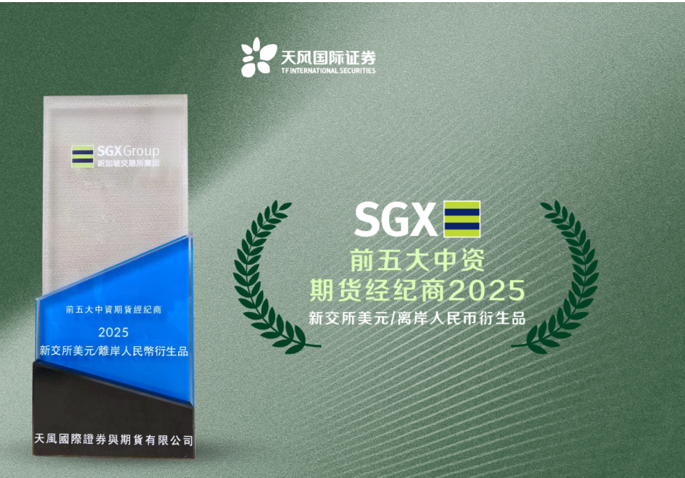 天风国际荣获新交所“前五大中资期货经纪商”大奖